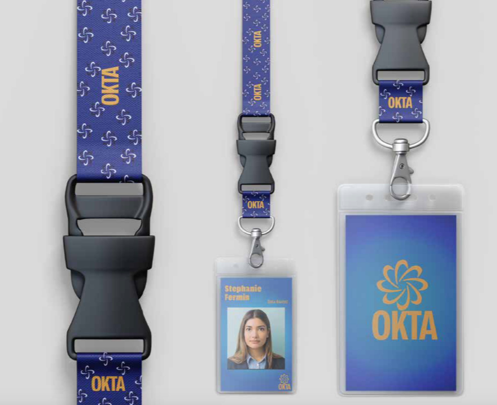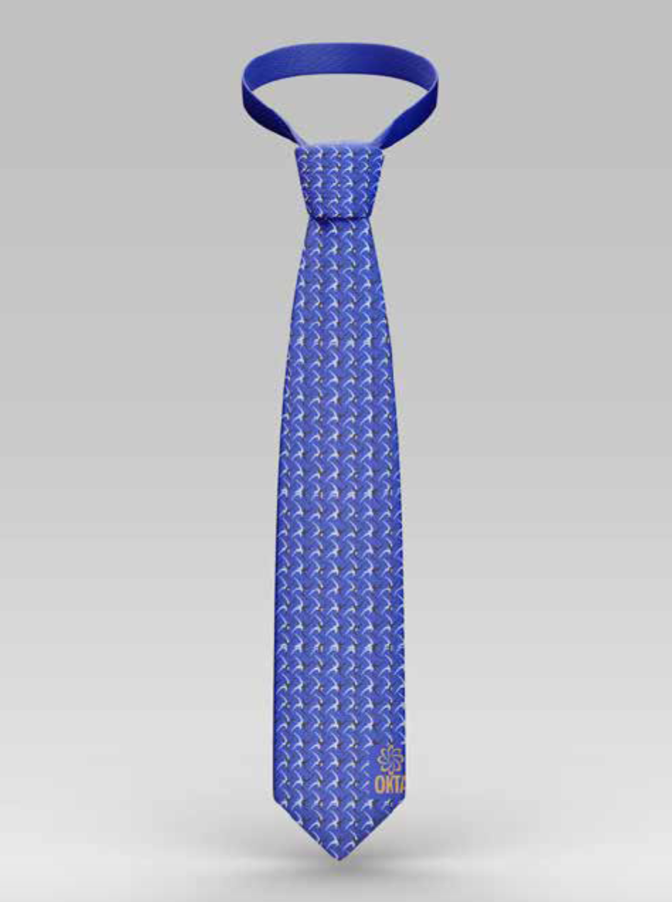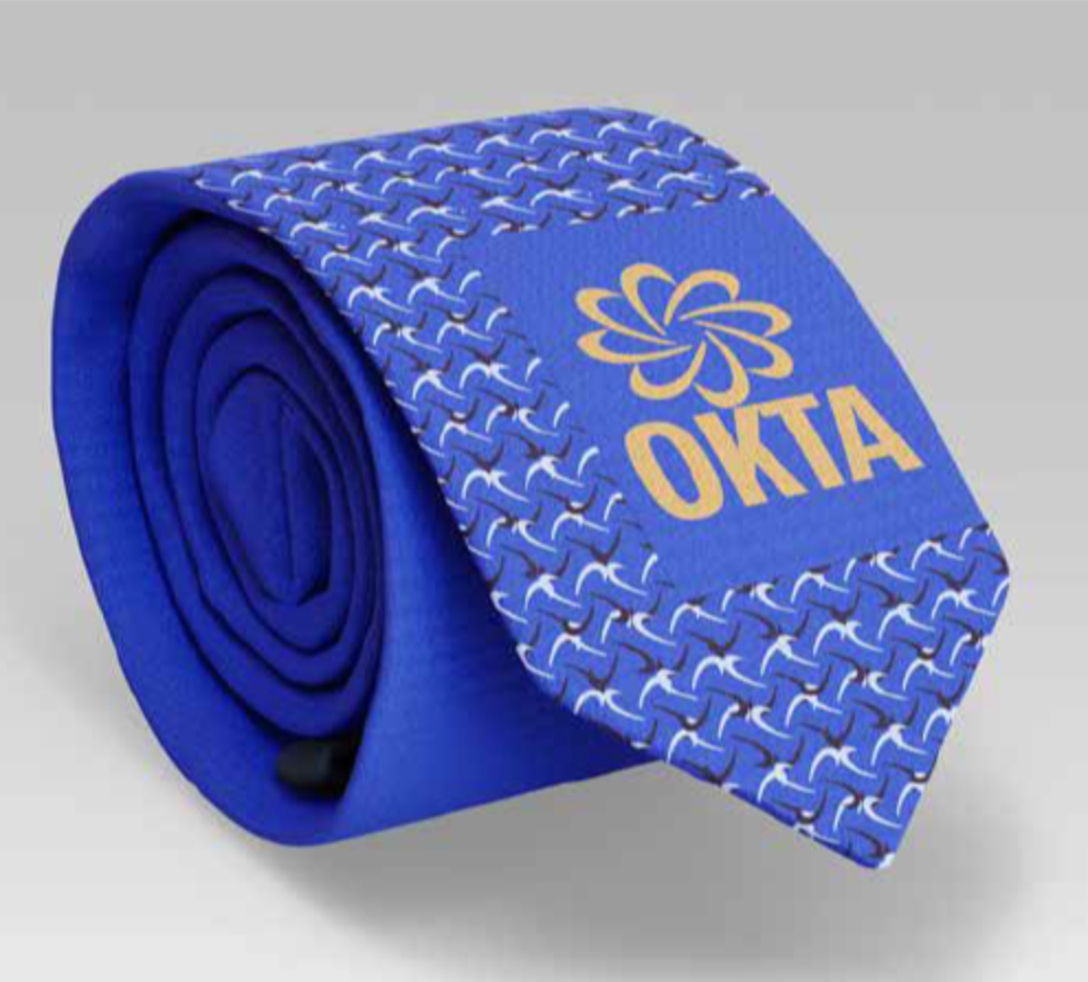 I was also tasked with creating items meant to go in the mailer box using patterns I designed to represent OKTA. I chose things that could typically be found in a corporate setting, such as ties and lanyards. For my last item, I chose something more practical that everyone uses and could be used to advertise OKTA outside of a corporate setting.