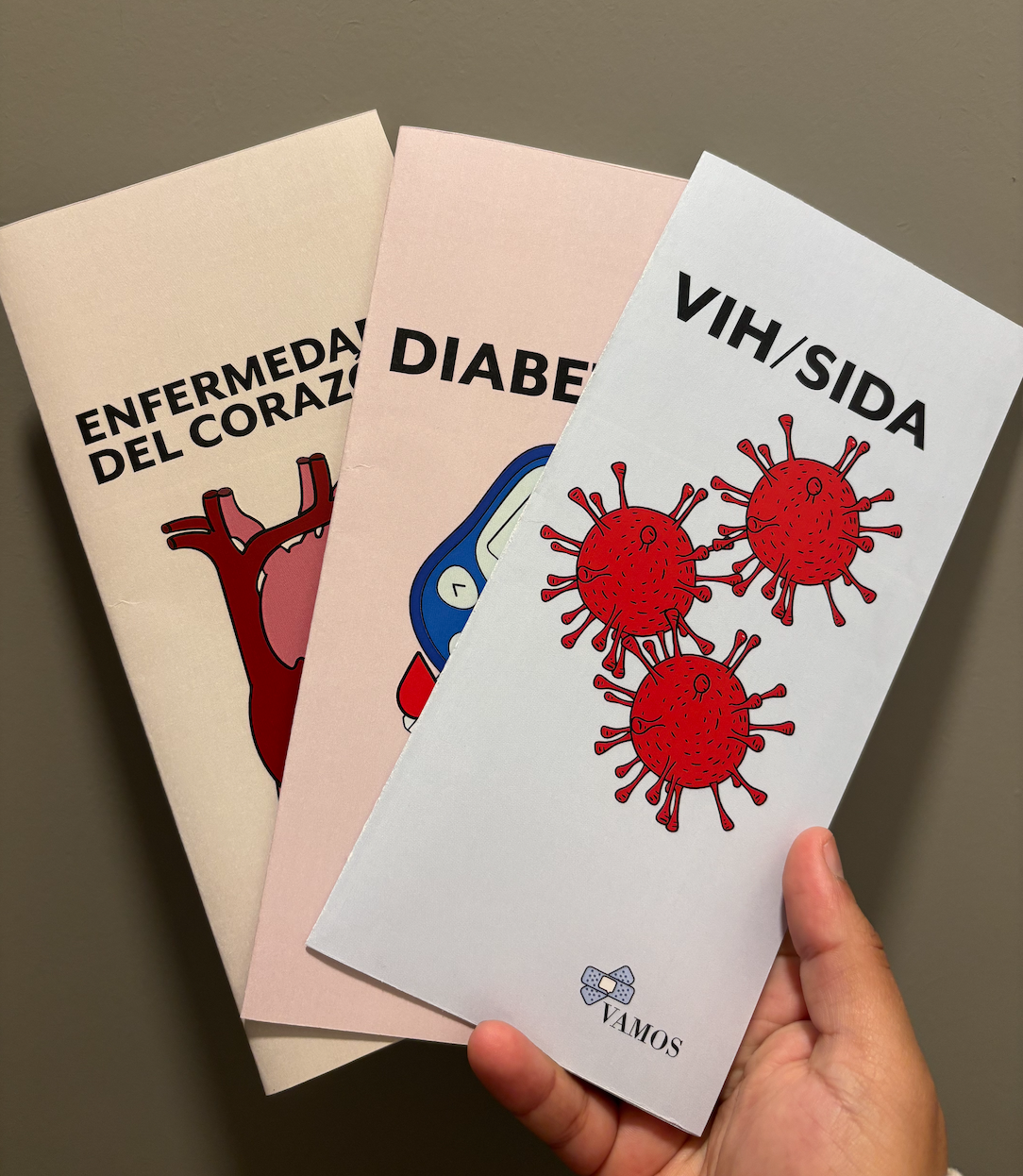 Many Spanish-speaking patients struggle to communicate their needs in medical environments, which can create fear, confusion, and hesitation in seeking care. VAMOS was created to address these gaps through a series of accessible print-based tools: a booklet that assists patients during check-in and translates medical terminology for both patients and doctors, a set of pamphlets covering common diseases within Hispanic communities, and an advertising campaign encouraging individuals to feel confident visiting healthcare providers. By providing information in Spanish and tools that support real medical conversations, VAMOS aims to make healthcare feel more understandable, approachable, and less intimidating for non-English speakers.